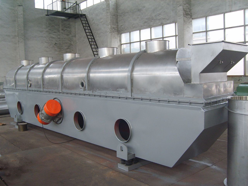 物料從進料口進入機內,在振動力的作用下,物料沿水平方向拋擲向前運動,熱風向上穿過流化床,同濕物料換熱后,濕空氣經脈沖式布袋除塵器除塵后,經過排風排出,干燥物料從排料口排出,之后進行收集包裝。